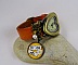 Le bracelet en cuir marron-orange large de 13mm mesure 23 cm de long avec une fermeture par boucle de ceinture de couleur bronze (s'attache avec une longueur entre 15 et 20 cm). Il est décoré d'un cabochon verre "Dolce Vita", d'un charme Papillon, de perles assorties en cristal Swarovski...