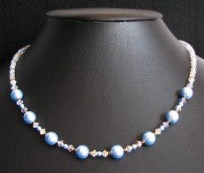 Un collier ras-du-cou, classique aux couleurs tendres, qui reprend les coloris et les perles des bagues Saturne Bleu ciel pour une parure parfaitement assortie : perles nacrées Light blue Swarovski, toupies en cristal Swarovski, rocailles fines bronze dorées...