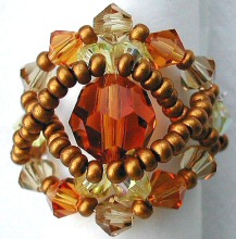 Toupies et perle ronde facettée centrale en cristal Swarovski. Les rocailles fournies ne sont pas identiques à celles des photos, ce sont des rocailles "fines bronze doré".