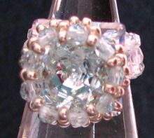 Claire et fine, cette bague est composée d'un cabochon carré Swarovski Light Azore (ciel très clair), encadré de petites perles rondes Swarovski également Light Azore, et montée sur un petit carré évidé (14mm) en cristal Swarovski transparent.