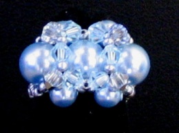 Simplicité et élégance pour une bague composée de perles Swarovki nacrées de ton Bleu très clair, associées à un duo de toupies en cristal.