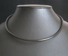 Ce collier est à réaliser avec les éléments fournis dans le kit : 50 cm de cordon de cuir noir épais (4mm de diamètre), deux attaches à écraser (une simple pince suffit), un fermoir à mousqueton et un anneau. Les apprêts sont argentés.