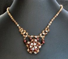 Douces couleurs d'automne pour ce collier qui associe le Crystal Golden shadow des toupies aux perles nacrées Swarovski couleur chocolat...