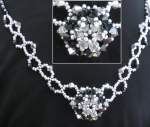 Un pendentif en relief à la forme étoilée, composé, comme pour la bague assortie, de toupies à cônes argenté sur cristal et de toupies noires. Rocailles argentées. Le kit comprend toutes fournitures (perles pour une longueur de collier jusqu'à 50 cm) et notice détaillée.