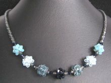 Le collier peut être réalisé jusqu'à une longueur de 48 cm. Les apprêts sont plaqué argent, avec un fermoir mousqueton et des perles recouvrantes.