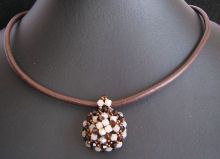 Une forme originale pour ce pendentif Grand Mekiro, en relief, dans des tons "Mocca et sable opale" pour lesquels d'autres bijoux assortis existent.