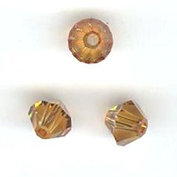 Toupie 4mm cristal Swarovski (réf 5301) de couleur "Crystal Copper" aux chauds reflets cuivrés.